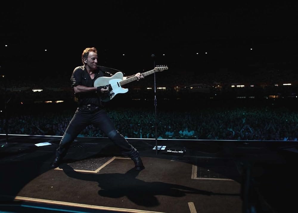 And yet the probably crackpot idea called out to me. When Bruce and his cross-country road buddy find themselves at a sort of county fair deep in flyover country, and even as we fixate on the movie’s Bruce as he’s succumbing to paralyzing depression (per his autobiography “the black sludge …threatening to smother every last living part of me, ) I mentally inserted a scene that would have been a long reach. That surely country-fied band in one scenes background, cranking out nearly unheard music for a milling crowd—what if they spotted our boy? What if they invited him up, the ever-avid performer, and he acceded to playing , say, “a new thing I’ve been trying to get right”?